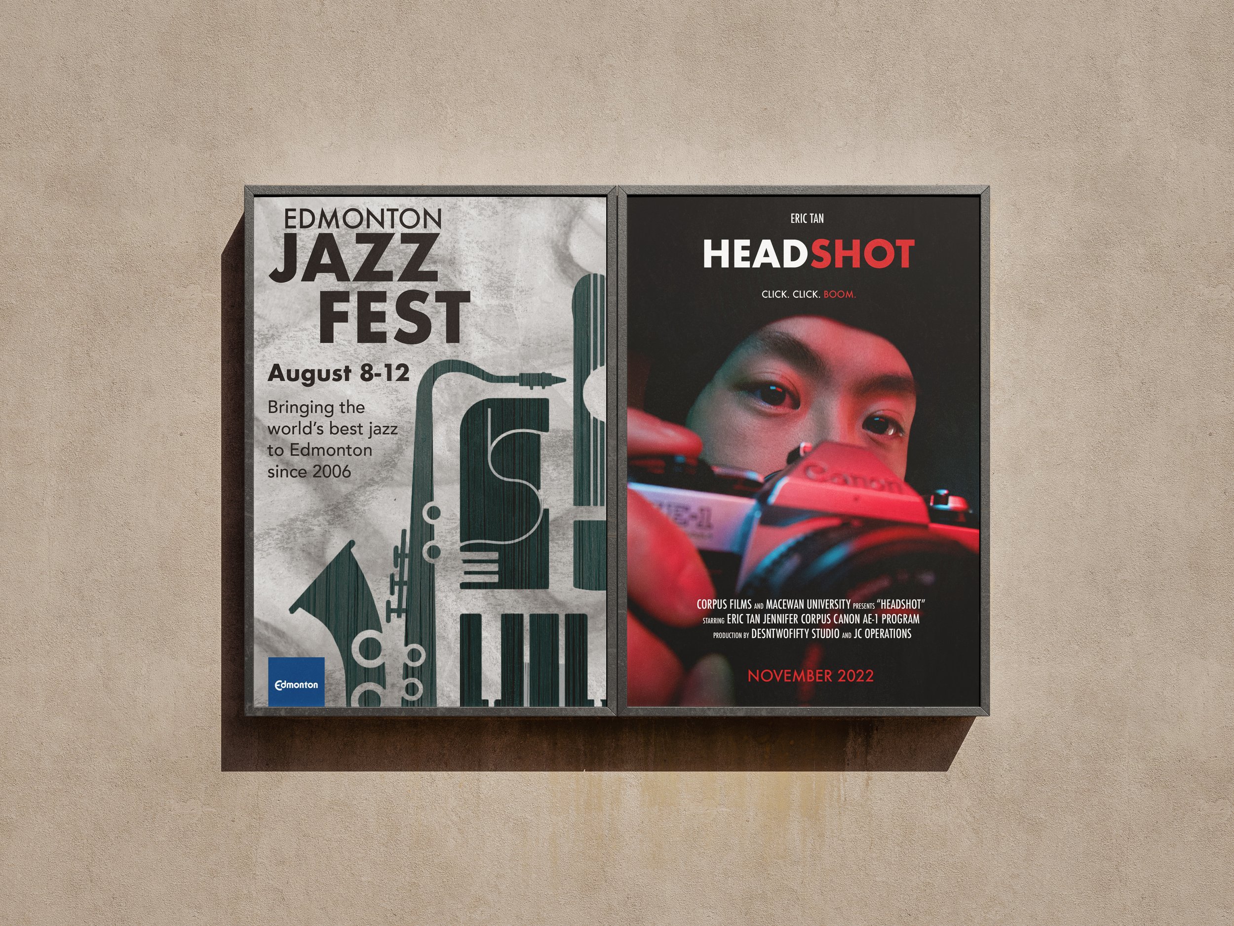 Students were given the task of creating promotional posters using various mediums. These posters both utilized photography. The Jazz band poster features textures of charcoal and wood from edited iPhone images.